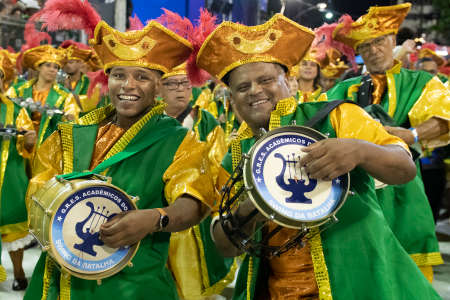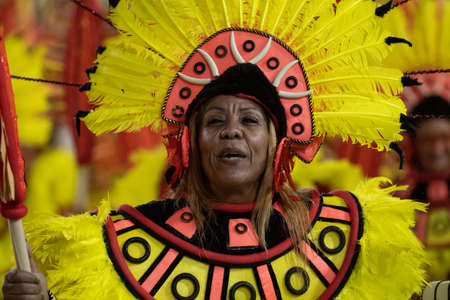 Rio, Brazil - February 22, 2020: parade of the samba school Academicos do Sossego, at the Marques de Sapucai Sambodromo