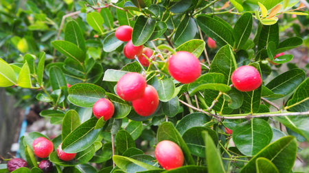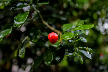 red nature cherry berry on the tree