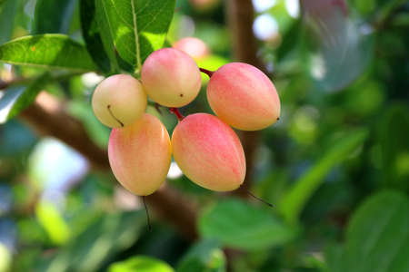 Indian cherry or riberry fruits hanging on the tree