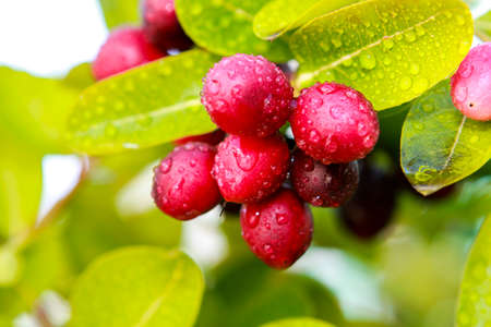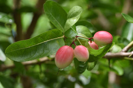 Fresh carissa carandas on the tree with raindrops