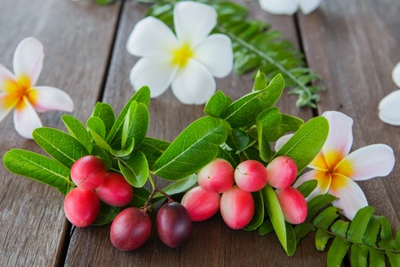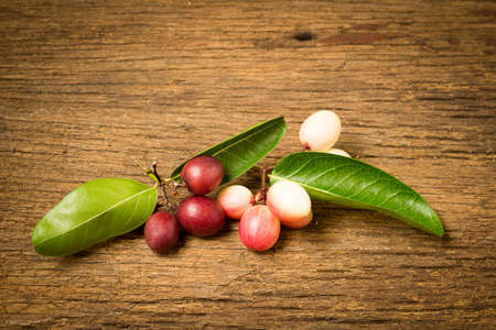 Bengal Currants (Carissa carandas L.), on woodtable, Thai fruit.