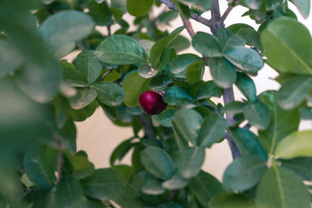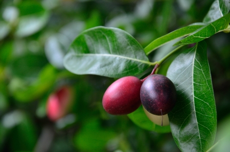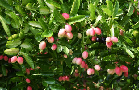 tropical Carissa carandas,Carunda,Karonda seeds ripe colorful on tree,vintage tone.