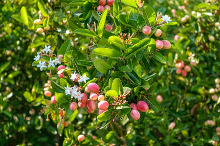 Ripe Caranda fruits on the bush (Carissa Carandas) Krabi, Thailand Asia