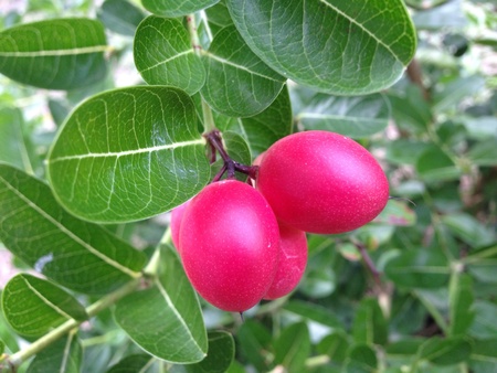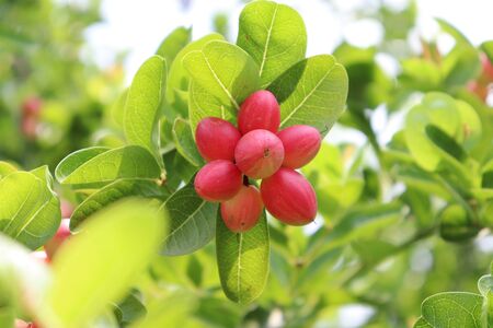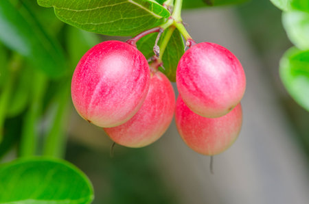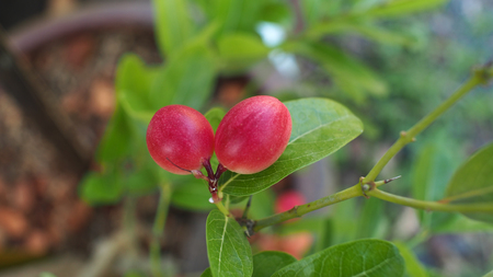 Carissa Carandas fruit is red. Sour taste High vitamin C fresh from the plant