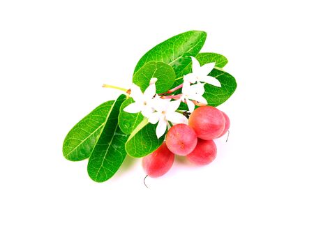 Carunda or Karonda fruit used to herb and medicine, red burry fruit and green leaves