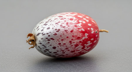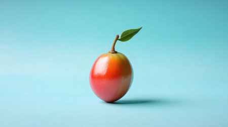 A vibrant organic fruit rests on a light blue background, showcasing its fresh appeal and natural beauty. Perfect for health and nutrition themes.