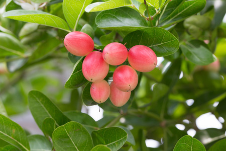 fresh Carissa Carandas on tree in plantation with blurred background . it has medicinal properties