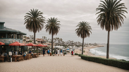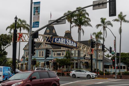 Picturesque Carlsbad Village vista on a rainy winter day, Southern California