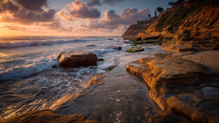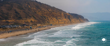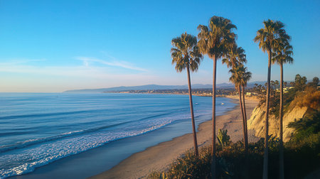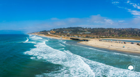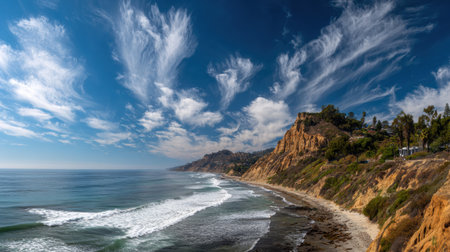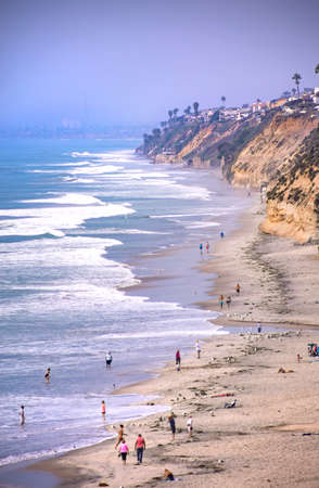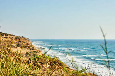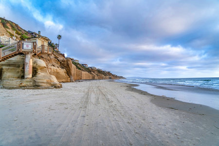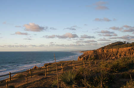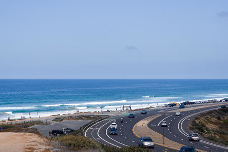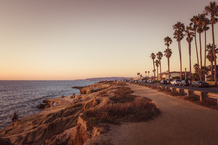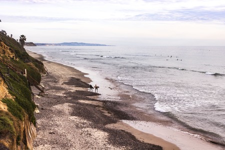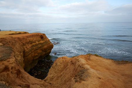 Coast of San Diego California with view of peaceful blue ocean and tranquil sky