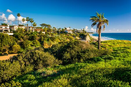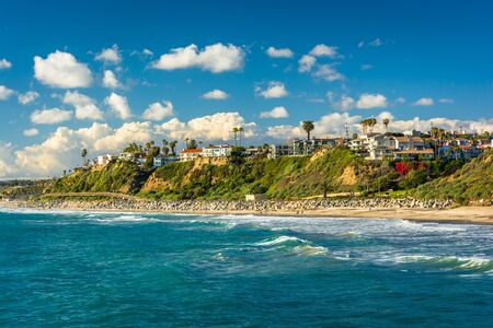 View of houses and the Pacific Ocean from a cliff in San Clemente, California.