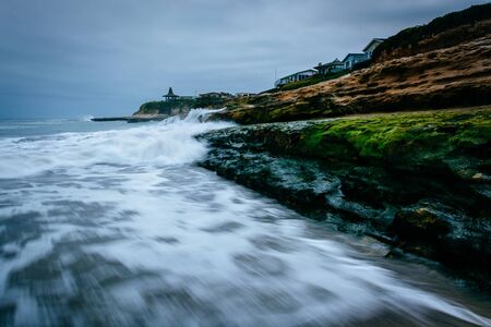 Ocean tide along the shore. Sunset Cliffs, Point Loma, San Diego, California. Horizon over the ocean, Aerial View, Seascape
