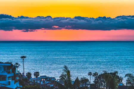 Sunset over the Pacific Ocean in Laguna Beach, California.