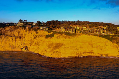 Aerial view of Scripps Coastal Reserve in La Jolla, California at sunset.