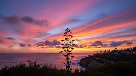 drought-tolerant native plant garden with view of the ocean, created with generative ai