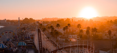 Aerial View of Santa Cruz Beach Boardwalk and Giant Dipper at Sunset
