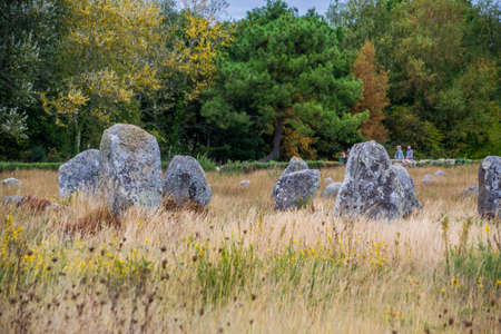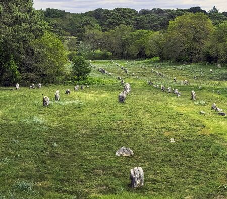 Lines of prehistoric standing stones in Carnac, Brittany, France