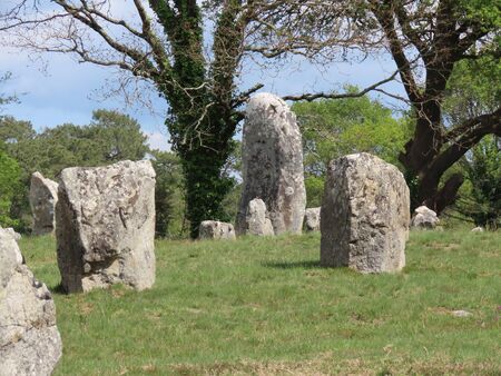 Prehistoric megalithic monuments menhirs in Carnac area in Brittany, France