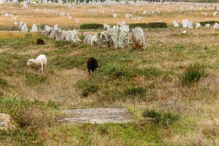 Sheep grazing in the Carnac Alignments, Brittany. France
