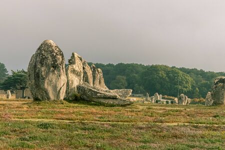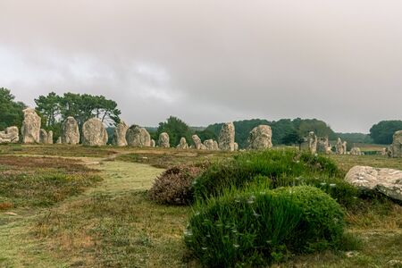 Ancient standing stones of Carnac, Brittany, northern France, a mysterious collection of huge stones from the neolithic age