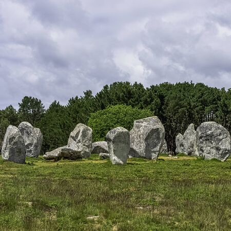 Stone circle in the middle of the biggest megalithic site of the world, Carnac, France
