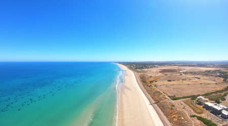 Aerial view of Australian wide open beach and coastline, taken at Sellicks Beach, South Australia.