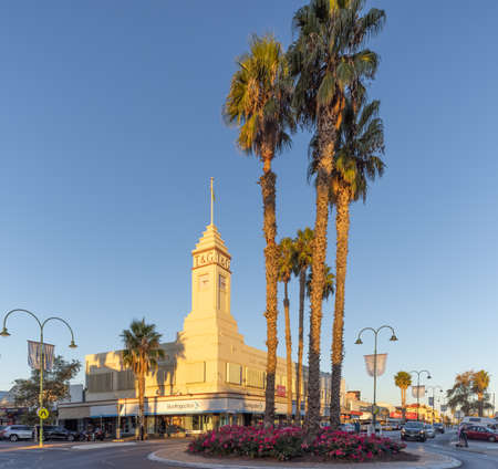 MILDURA, AUSTRALIA - MAY, 18, 2021: sunset shot of the historic t and g building in the city of mildura