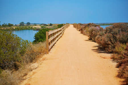 Walkway along the rocky coastline in Algarve region of Portugal.