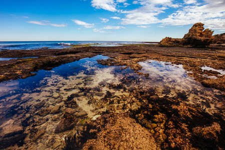 Rock formations on the beach at Ricketts Point, Melbourne, Australia.