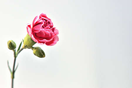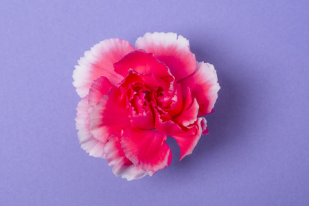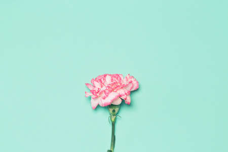 mothers day design concept - top view of a carnation, blue background for valentines day with copy space for mock up.