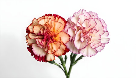 A breathtaking display of vivid carnations in a sunny garden, showcasing delicate petals in shades of pink and red, illuminated by soft light.
