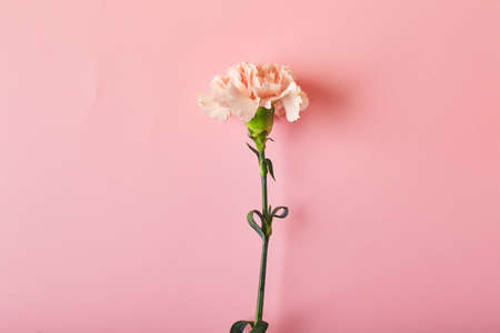 Bouquet of pink carnations. Design concept of holiday greeting with carnation bouquet on pink table background