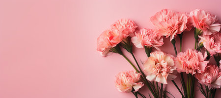 Bright carnations arranged on a pastel pink background, generative ai