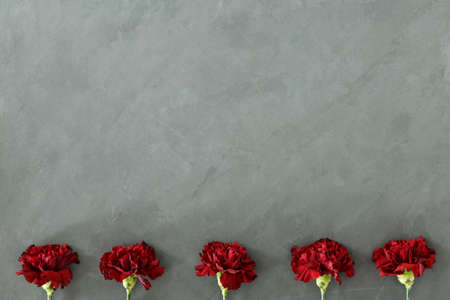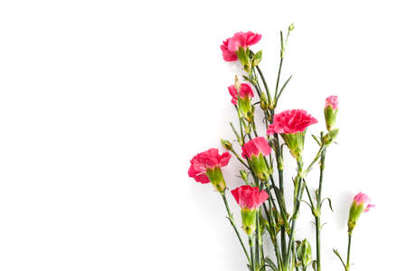 Concept of May 9 russian holiday Victory Day. bouquet of Red carnations isolated on white background. flowers on the memorial to fallen soldiers,symbol of mourning.copy space