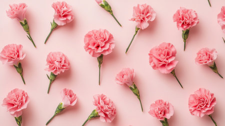 Pink carnations on pastel background, floral pattern. Romantic and elegant botanical concept