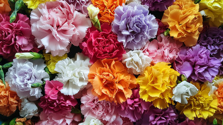 A vibrant arrangement of various colored carnations in a floral display, showcasing natures beauty in a close-up view