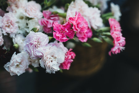 Beautiful pink carnations in soft focus showcasing natural elegance and floral beauty in serene arrangement