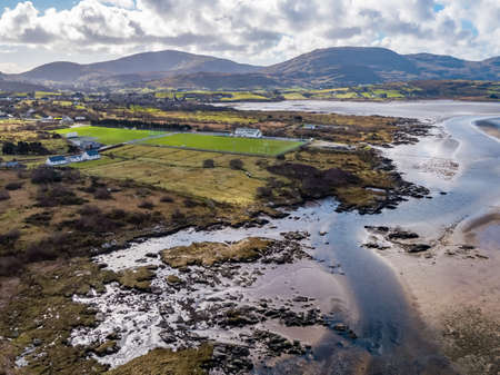 Landscape of beach, hills and atlantic ocean of beautiful Ring of Kerry, Ireland. Travel destination for many tourists