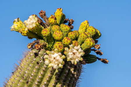 Cactuses with yellow flowers in the desert of Arizona, USA