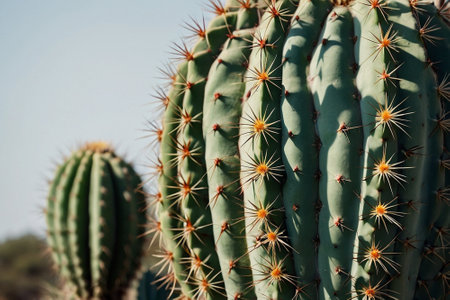 AI Generated. A close-up of a prickly cactus with its spines glistening in the sunlight