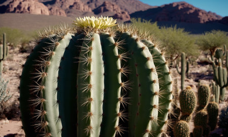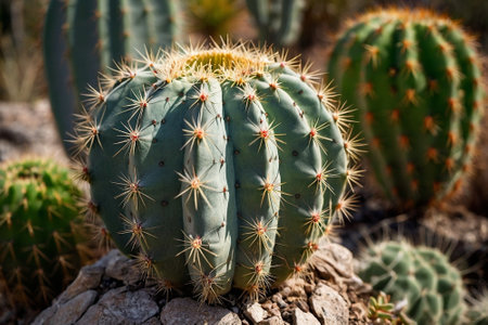 Close up of a large cactus plant thriving in arid conditions, showing its resilience and unique beauty. Ai generated image