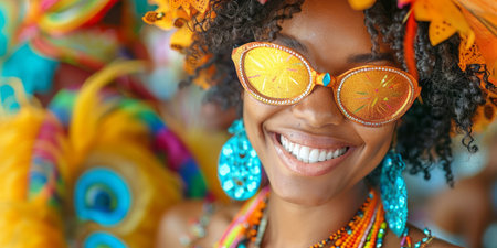 Portrait of beautiful african american woman in colorful carnival costume