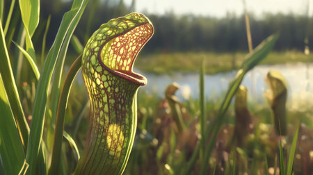 Vibrant Carnivorous Pitcher Plants Thriving in Their Natural Habitat at Dawn