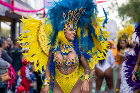 LONDON - AUG 29: Performer takes part in the Notting Hill Carnival on August 29, 2011 in London, England. The annual carnival, the largest in Europe, takes place every August Bank Holiday since 1966.