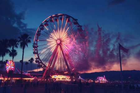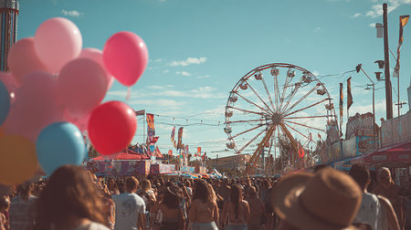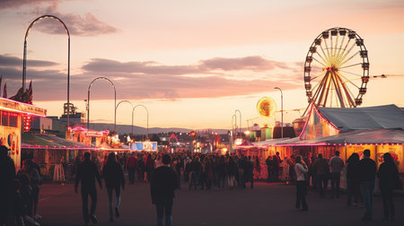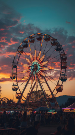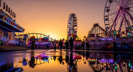 Colorful fun fair vibrant amusement park thrill rides festive atmosphere