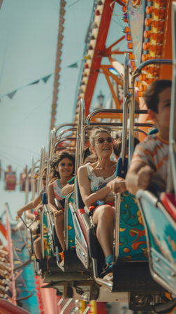 With smiles all around, mom, dad, and children share thrilling moments on the rides