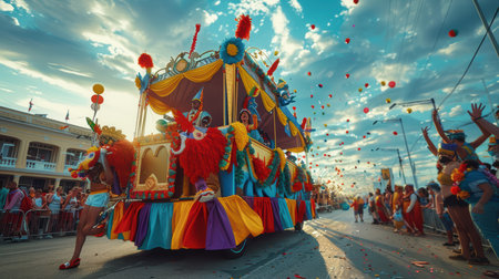 Carnival in Barranquilla, Colombia: A dazzling spectacle of vibrant costumes, rhythmic music, and lively dances, celebrating the city's rich cultural heritage and festive spirit