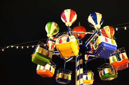 Amusement, park. Multicolored lamps and Light illumination on the carousel.