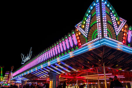 Munich, Germany - September 26, 2015: Illuminated roof of a bumper car attraction at Oktoberfest