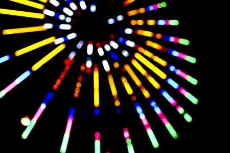 Multicolored tracks of lights from amusement park rides at night as an abstract background. Motion blur.