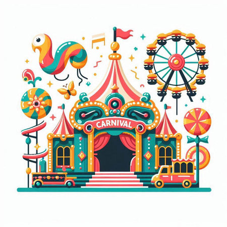 Circus carnival. Colorful vector illustration in flat style.